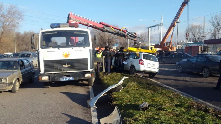 Груженый "КамАЗ" столкнулся с Lada и перевернулся в Алматы Фото программы "Территория происшествий".