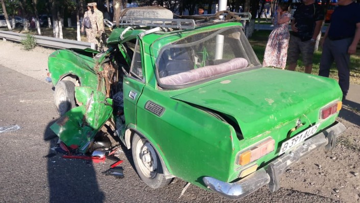 На окраине Алматы грузовой автомобиль раздавил легковой "Москвич", в результате чего три человека попали в больницу, сообщает корреспондент программы "Территория происшествий" на телеканале СТВ.