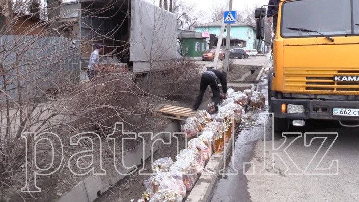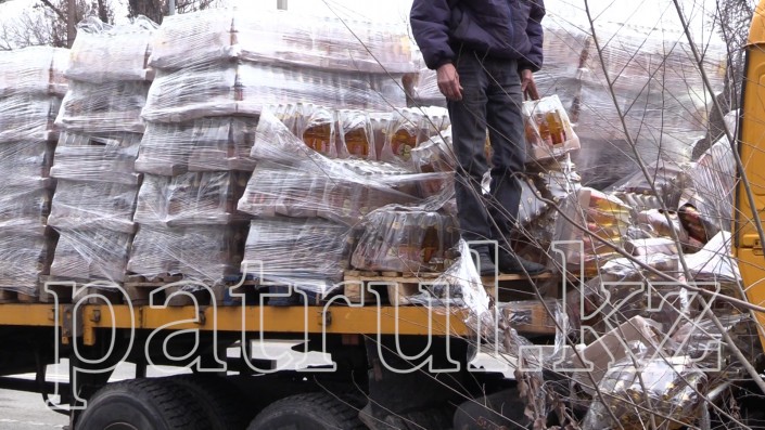 Груженный пивом КамАЗ с прицепом двигался по улице Бокейханова в северном направлении. Не доезжая проспекта Райымбека резко остановился впереди ехавший трактор. Водитель грузовика тоже вынужден был экстренно нажать на педаль тормоза. От резкого торможения упаковки с янтарным напитком рассыпались в разные стороны.
