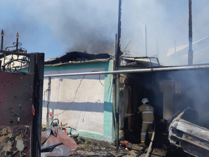 Также в другом районе произошел похожий пожар. В 12.36 в Жетысуском районе горел бокс, внутри которого была автомашина. Огонь перешел на частный жилой дом на трех владельцев. Пожар локализован в 12.54 и ликвидирован в 13.08. Общая площадь пожара составила 220 квадратных метров. Жертв и пострадавших нет. В тушении пожара были задействованы шесть единиц техники и 26 пожарных.