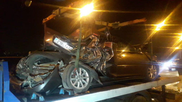 Крупное ДТП произошло вечером в четверг в Алматы на мосту-развязке Рыскулова - Жансугурова, передает корреспондент программы "Территория происшествий" на телеканале СТВ.