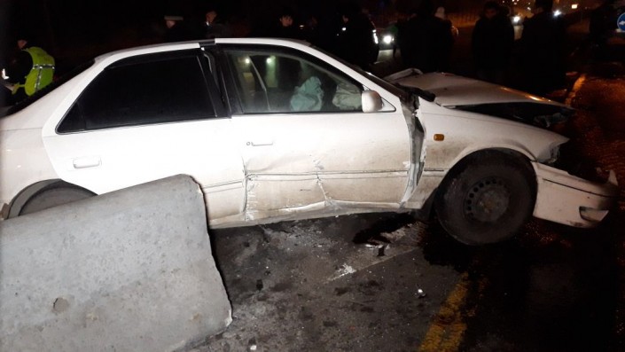 Далее два авто протаранили бетонное ограждение. От сильного удара одна секция ограждения даже вылетела на встречную полосу. В результате аварии пострадали два человека - пассажир из Hyundai и водитель белой Camry. С различными травмами они госпитализированы.