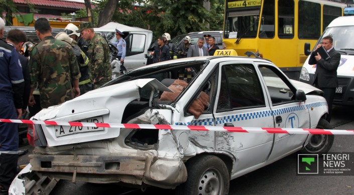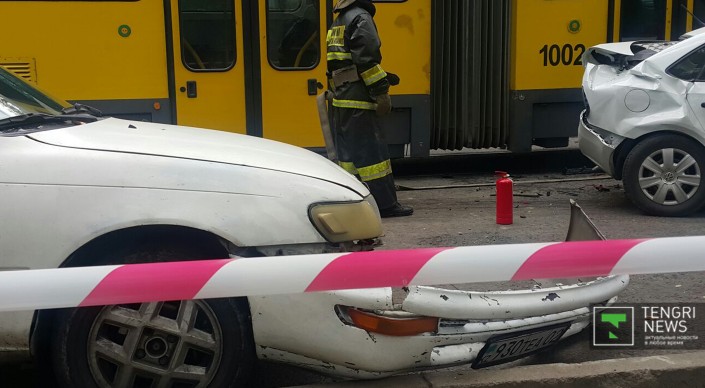 Корреспонденту Tengrinews.kz очевидцы рассказали, что тормоза у трамвая отказали еще на улице Шевченко. Стоит добавить, что на кабине трамвая есть знак "За рулем стажер".