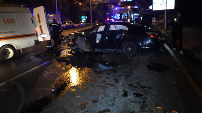 По словам очевидцев, автомобиль BMW, двигаясь в северном направлении по встречной полосе, проигнорировал красный сигнал светофора и выехал на перекресток. В этот момент по Богенбай батыра в западном направлении ехала Audi.