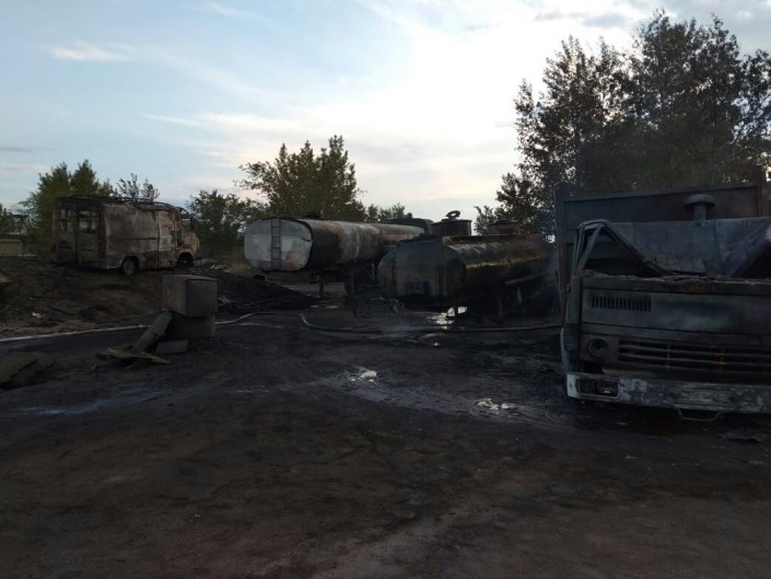 "Сообщение о пожаре поступило в 18 часов 22 минуты. На улице Химкобинатовская на территории автостоянки для грузовых автомобилей горел полуприцеп бензовоза. Огонь перекинулся на рядом стоящий бортовой КамАЗ. Пожар локализован и ликвидирован в 19 часов 15 минут",  - сообщили в пресс-службе ДЧС Павлодарской области.