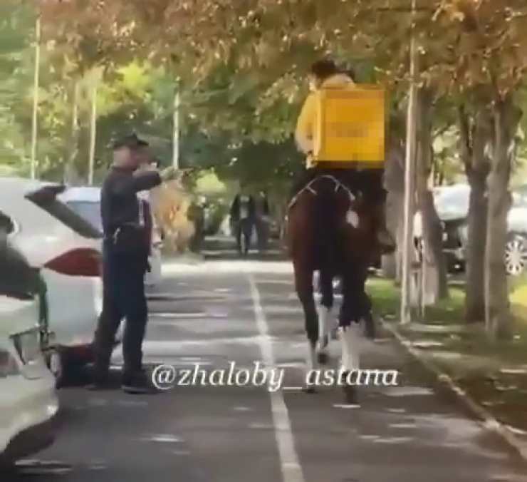 Курьером на лошади в Алматы заинтересовалась полиция Фото:instagram.com/zhaloby_astana