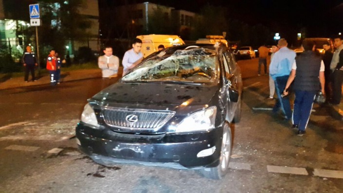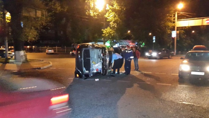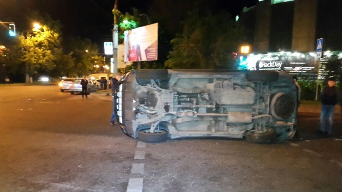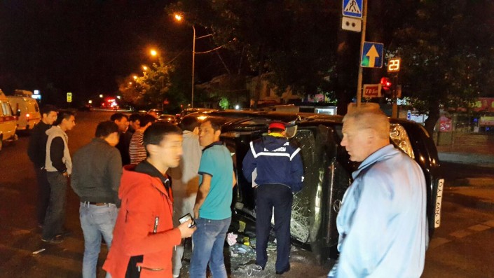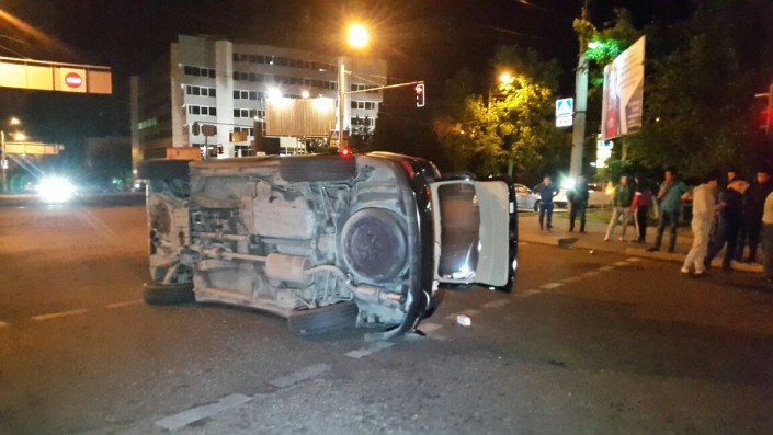 Ночью 14 мая в Алматы внедорожник Lexus перевернулся в результате столкновения с легковым автомобилем Hyundai Accent. Дорожная авария произошла на пересечении улиц Сатпаева, Жандосова и Манаса, передает корреспондент программы "Территория происшествий" на телеканале СТВ.