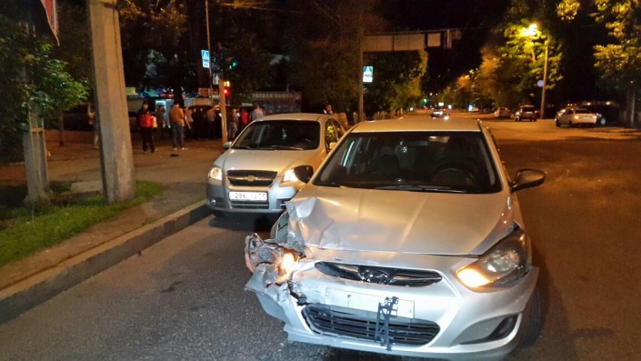 При повороте налево с улицы Сатпаева на Манаса Lexus столкнулся с Hyundai, который в этот момент двигался в восточном направлении по Жандосова. Кто из водителей проехал на красный сигнал светофора, сейчас выясняется.