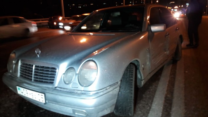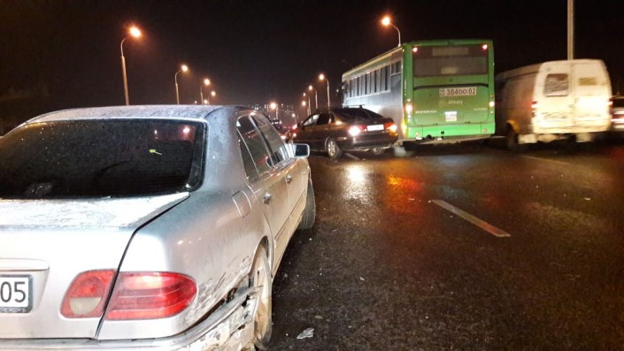 По словам очевидцев, автомобиль Mercedes-Benz двигался по Момышулы на север. По неизвестной причине водитель выехал на полосу встречного движения, где столкнулся с Mercedes-Benz W211, который двигался в южном направлении. Он удара Mercedes отбросило в LADA, после чего он врезался в манипулятор.