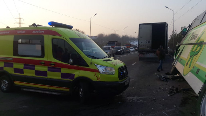 Массовое ДТП с участием пассажирского автобуса произошло в Алматы, передает корреспондент программы "Территория происшествий" на канале СТВ.