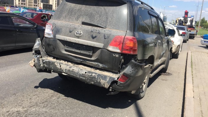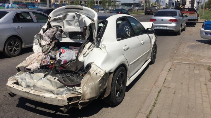 "В 11.30 водитель грузовика допустил столкновение с автомобилем марки "Газель", затем еще с пятью автомобилями, которые стояли на красный свет светофора. ДТП, по предварительным данным, произошло из-за несоблюдения дистанции и скоростного режима", - сообщили в пресс-службе Департамента полиции Нур-Султана.