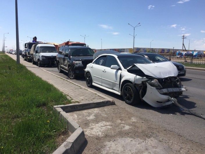 "В последний момент никакой реакции у него не появилось, тормозной путь у него пять метров, не больше. Возможно, отвлекся, возможно, стало плохо. В итоге он "собрал" шесть автомашин, которые стояли впереди: пять легковых и одна "Газель". Столкновение началось с грузовой "Газели". Она дальше по инерции ударила следующее авто. Водитель грузовика находится в непонятном состоянии, он неконтактный, без сознания, но телесных повреждений у него нет. Кабина целая, он внутри не бился", - пояснил Елжан Чупеков.