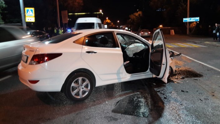 В аварии поучаствовали инкассаторская машина, BMW, Hyundai Accent и Nissan Teana. Инкассаторская "Газель" и BMW двигались по Сатпаева в восточном направлении. Водитель Nissan Teana собирался повернуть налево. Следовавший в противоположном направлении Hyundai Accent выехал на полосу встречного движения и допустил столкновение с тремя авто.