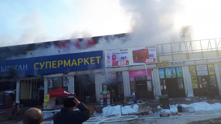 По информации КЧС, загорелись бутики, пристроенные к супермаркету "Сабыржан" по улице Северное кольцо, 53. Сообщение поступило в 13.03, первые пожарные расчеты прибыли в 13.16.