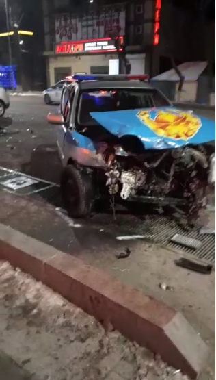 Нарушитель на дороге столкнул два полицейских авто в Шымкенте