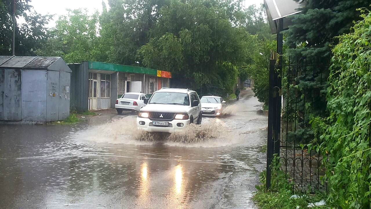 В Алматы после проливного дождя затопило несколько улиц, сообщает корреспондент Tengrinews.kz.
