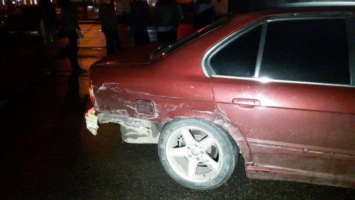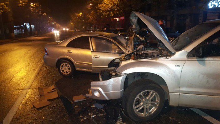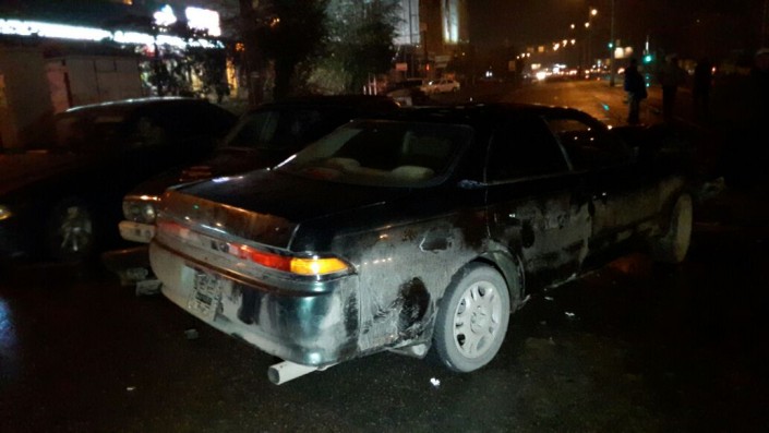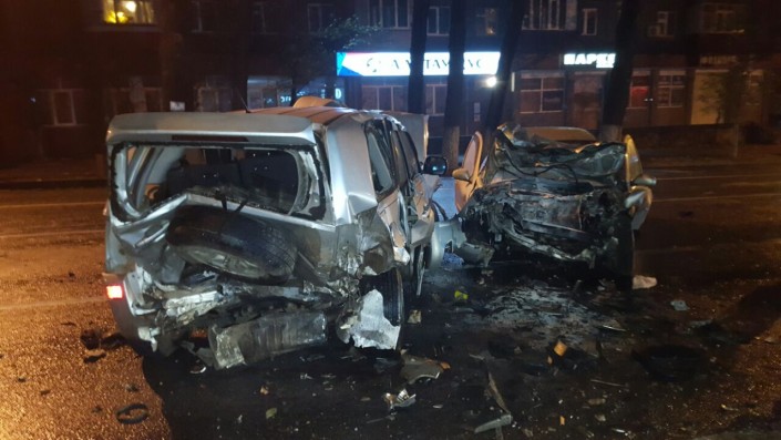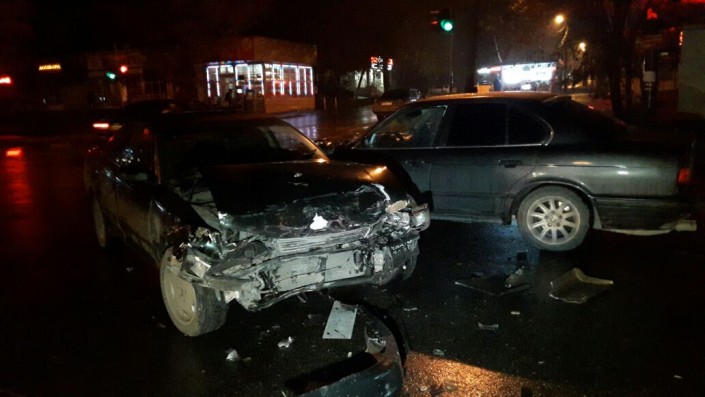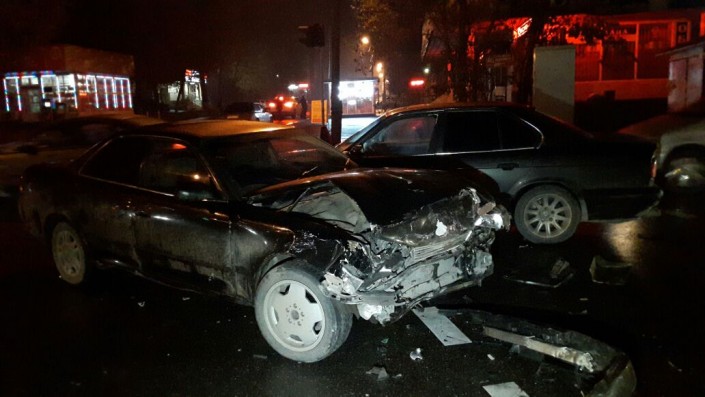 Первое ДТП произошло на пересечении улиц Толе би и Тургута Озала. По словам очевидцев, водитель Toyota Mark II проигнорировал красный сигнал светофора и столкнулся с двумя автомобилями марки BMW. В результате аварии пострадал водитель Toyota Mark II, его госпитализировали.