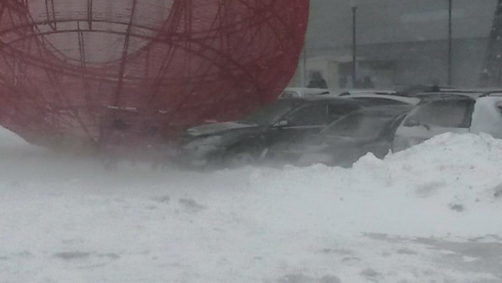 Новогодний шар придавил авто возле ТРЦ в Астане Фото очевидца