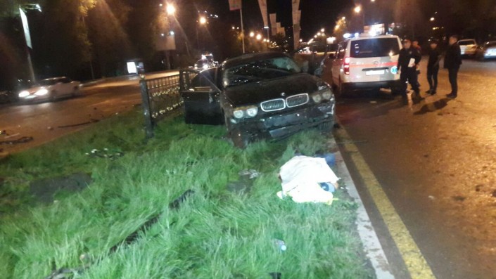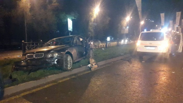 Авария произошла на Аль-Фараби за торговым центром Esentai Mall, перед улицей Шашкина (бывшая улица Университетская). Автомобиль марки BMW 745 двигался в восточном направлении. Водитель авто, не справившись с управлением, на большой скорости вылетел на газон и совершил наезд на препятствие.