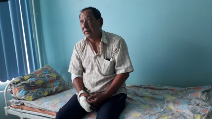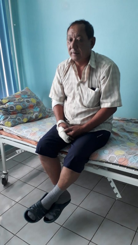 Мужчина находится в отделении травматологии БСМП. У него обгорели затылок, ухо, кисть и локти.