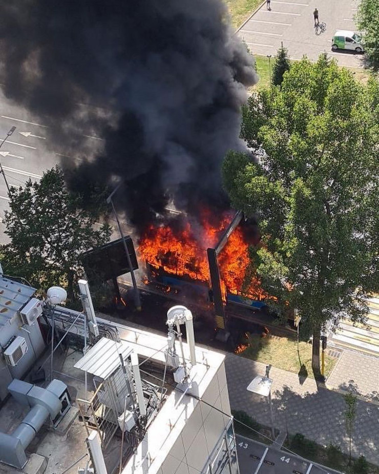 Пассажирский автобус горел в Алматы, пострадал водитель