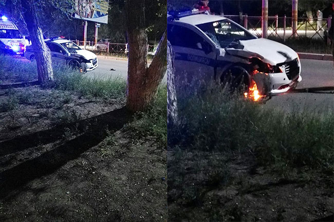 Пассажир мотоциклиста погиб после столкновения мотоцикла с полицейским авто в Капшагае Фото©"Колеса".