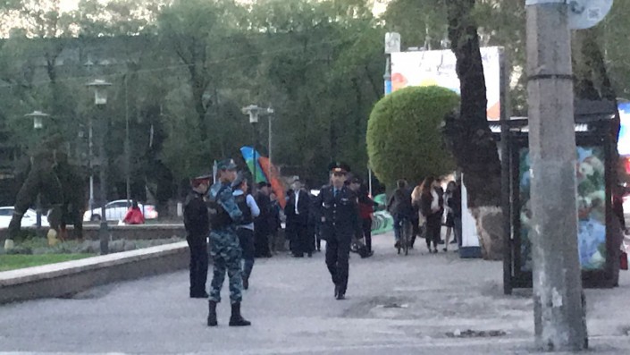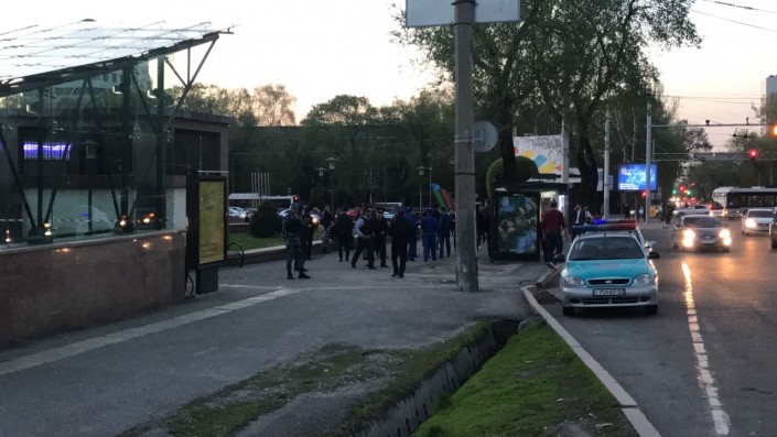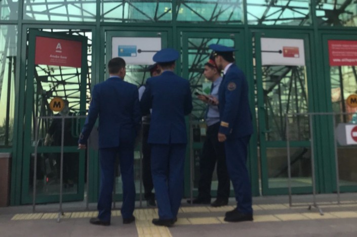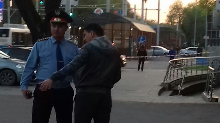 У входа на станции метро "Байконыр" и "Драмтеатр имени Мухтара Ауэзова" также стоят полицейские. Они никого не пускают внутрь и просят людей отойти подальше.