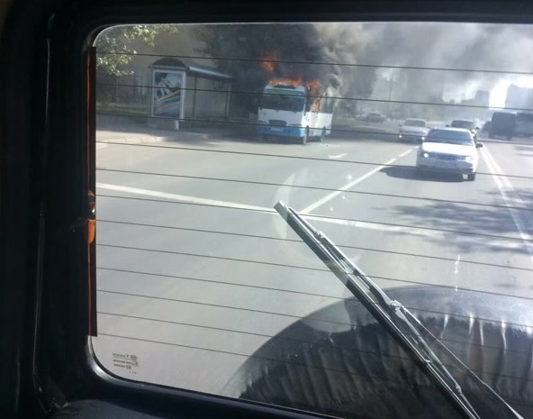Пассажирский микроавтобус горел в Астане Фото с сайта astinfo.kz