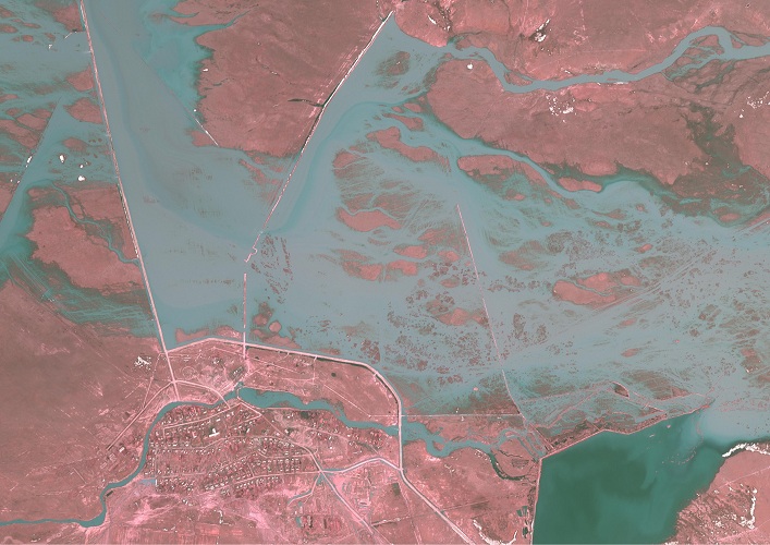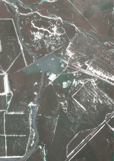 Поселок Восток. Дата съемки 13 апреля 2015 года. Спутник KazEOSat-1. Обзорный вид.