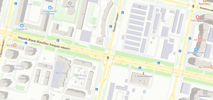 Кроме того, для бесконфликтного левого поворота со встречным потоком на улицу Акмешит с улицы Керей Жанибек хандары установлены дополнительные секции светофорного объекта. По улице Акмешит исключены маневры разворота, вместе с тем, кроме запрета разворотов на указанном перекрестке, рассматривается вопрос об исключении маневров левого поворота при движении по Акмешит со стороны улицы Алматы в направлении улицы Туркестан.