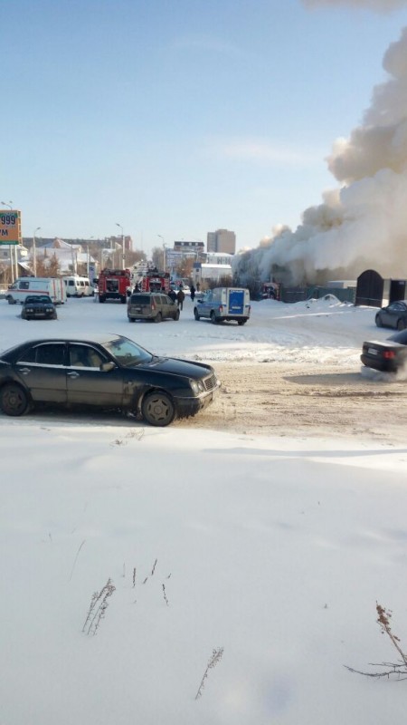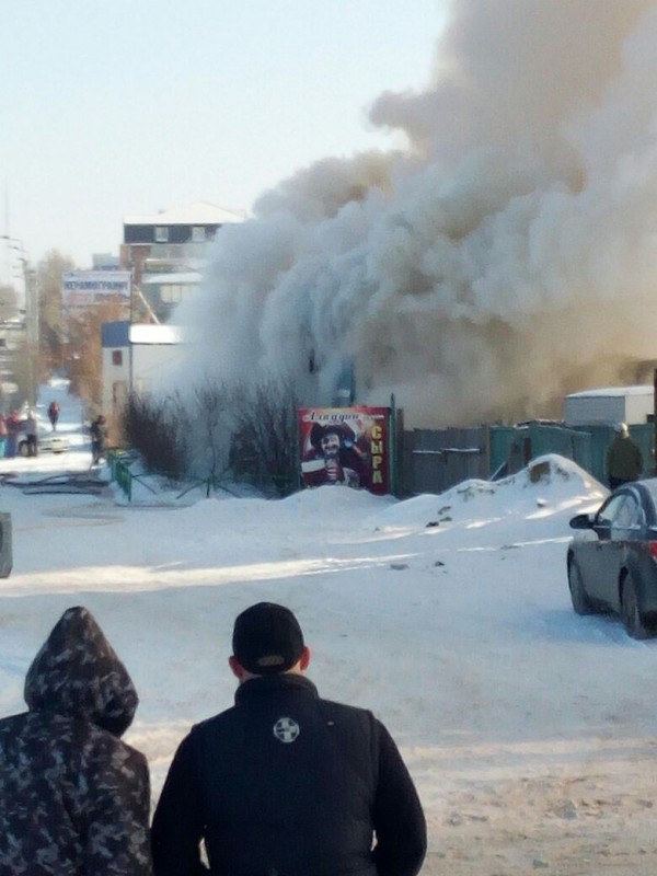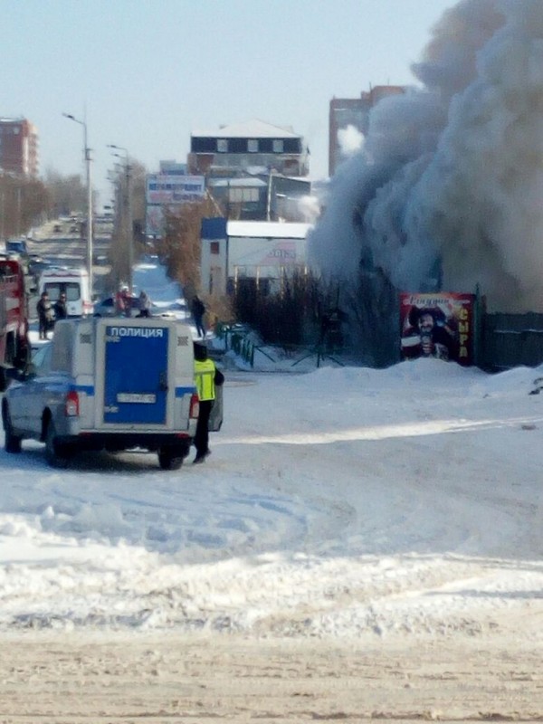 Как сообщает местное издание, горит пивной бар "Волна" по улице Каирбекова.