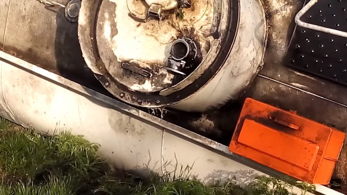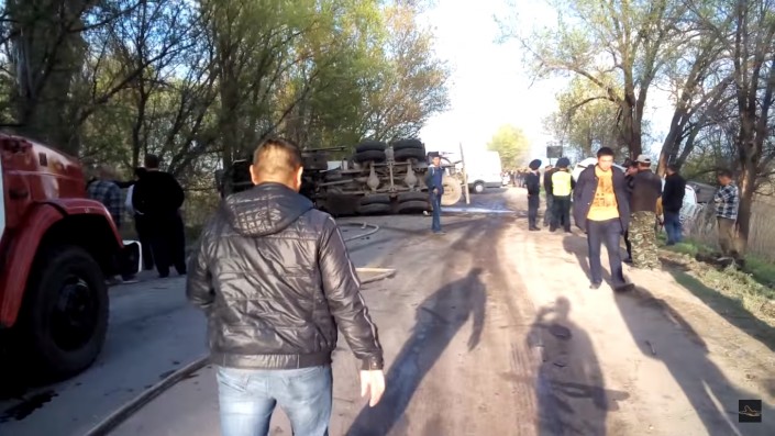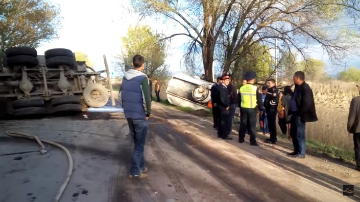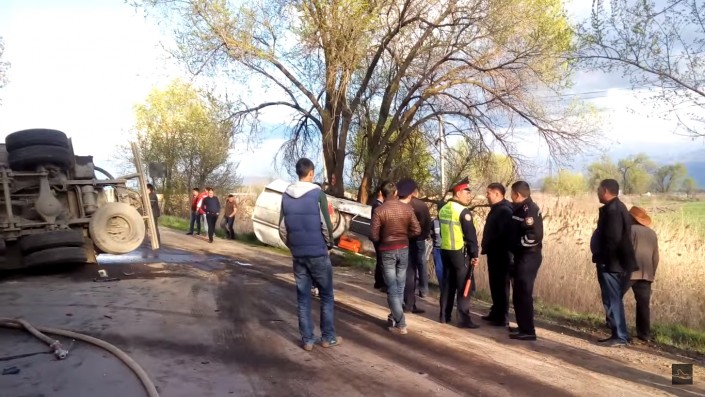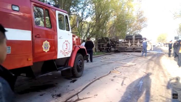 Вечером 13 апреля близ Алматы перевернулся бензовоз с цистерной на прицепе. В результате инцидента дорогу тут же залило горючим (дизельным топливом), но пожара и взрыва удалось избежать. Об этом изданию Kolesa.kz рассказал один из очевидцев.