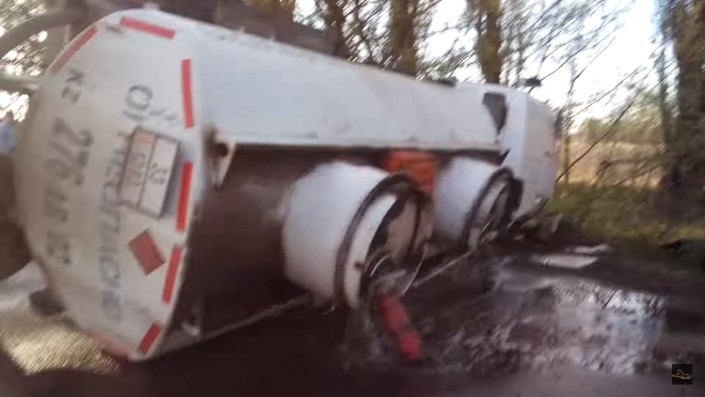 Очевидцы рассказали, что на пути у бензовоза столкнулись внедорожник Mitsubishi Pajero и легковушка LADA. Пытаясь избежать столкновения, водитель автоцистерны резко сманеврировал и завалил машину набок. При этом цистерна с топливом укатилась на обочину другого края дороги. Водителя вытащили из кабины живым и невредимым.