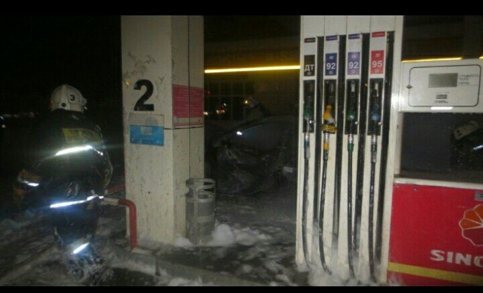 "По прибытию СПЧ № 3 было установлено, что на территории АЗС открытым пламенем горит автомобиль марки "КIA Sportage" с переходом на заправочную колонку. Благодаря оперативным, грамотным и профессиональным действиям, а также в правильном принятии решения тушения пожара огнеборцы СПЧ № 3, а также дежурная служба пожаротушения предотвратили взрыв, а также были эвакуированы близстоящие машины на безопасное расстояние, тем самым удалось избежать трагедии", - говорится в сообщении.