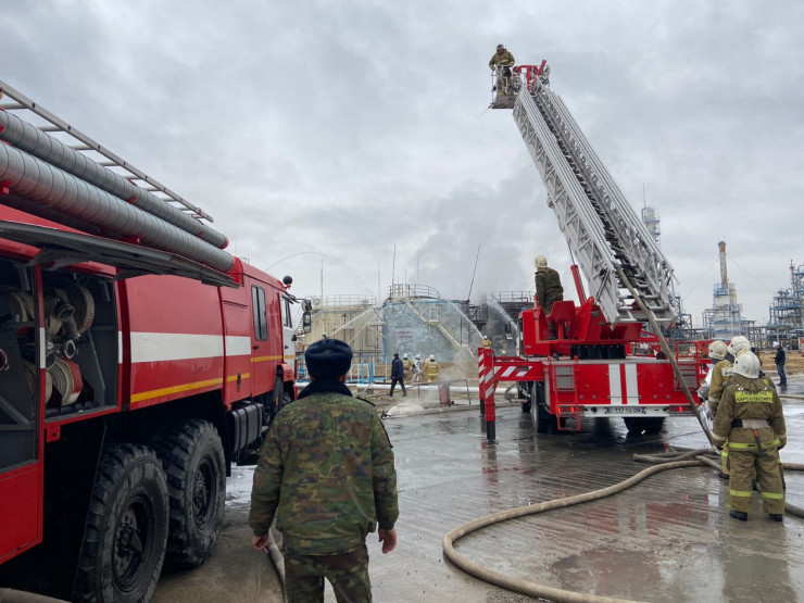 "В селе Аса Жамбылского района Жамбылской области произошел пожар на территории таразского филиала ТОО "Амангельдинский ГПЗ" (газоперерабатывающего завода). Горели два резервуара с дизельным топливом общим объемом 480 кубометров. Сообщение в дежурную службу ДЧС поступило в 12 часов 4 минуты", - говорится в сообщении.