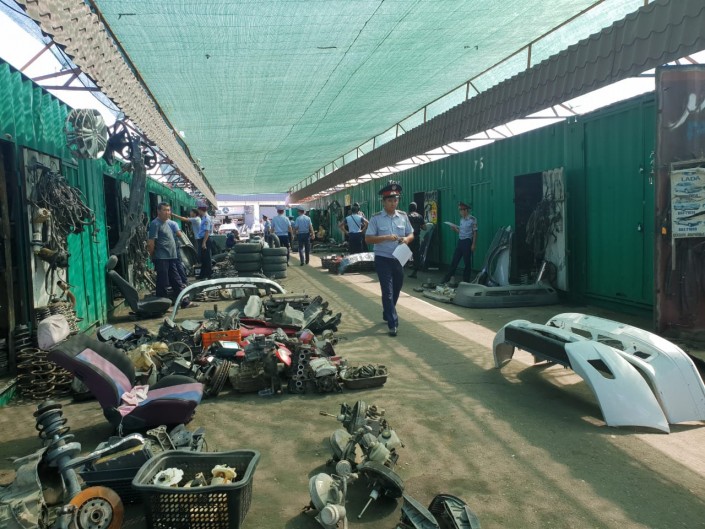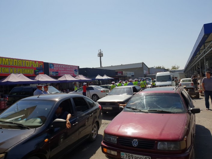 Накануне в Алматы проводился аналогичный рейд на крупнейшем рынке автозапчастей "Кар сити".  Около 300 полицейских оцепили авторынок по периметру. Позже подъехала машина с аппаратурой для проверки документов всех продавцов. У торговцев проверяли документы, удостоверяющие личность, а также разрешения на продажу автозапчастей. Некоторых людей выводили на улицу и проверяли отдельно в машине.