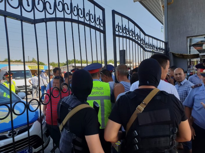 Ровно в 10 часов сотрудники местной полицейской службы оцепили территорию базара "Тулпар-2030". На месте работают более 200 сотрудников. "Люди в форме проверяют документы на прописку, на автомобили. Кроме того, сотрудники полиции проверяют наличие документов на продажу аксессуаров. Всех продавцов полицейские под роспись на специальных бланках знакомят со статьей 196 о скупке краденого", - рассказали продавцы рынка.