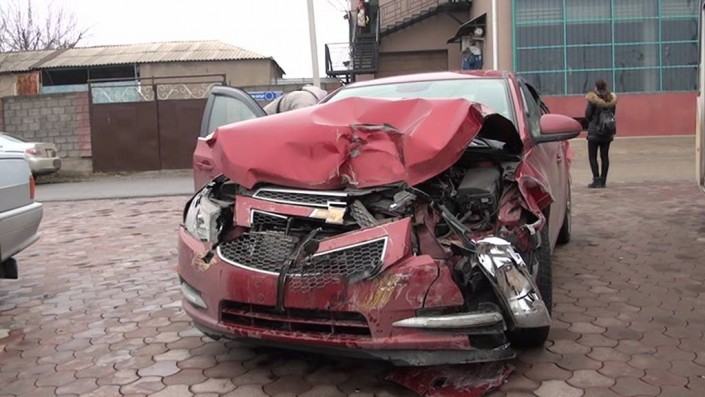 По словам участников аварии, машины стояли на светофоре по проспекту Байдибек би в сторону микрорайона "Нурсат", и в этот момент сзади их протаранил самосвал HOWO.