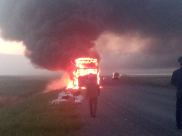 Сгорел дотла рейсовый автобус, следовавший из Костаная в Астану Фото с сайта ng.kz
