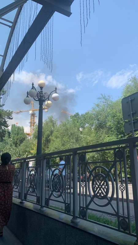 По словам очевидцев, проспект Назарбаева и близлежащие улицы затянуло дымом, сильно пахнет гарью.