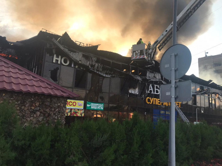 "Принятыми мерами удалось отстоять первый этаж супермаркета "Сабыржан", торжественный зал ресторана " Жибек жолы"и склад с продовольственными товарами. Задействовано 22 единицы техники 76 человек личного состава ДЧС, Департамента полиции, служб взаимодействия. Жертв и пострадавших –нет. Общая площадь пожара 1250 квадратных метров", - заключили в ведомстве.