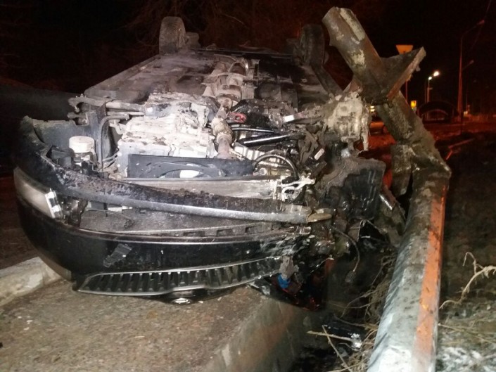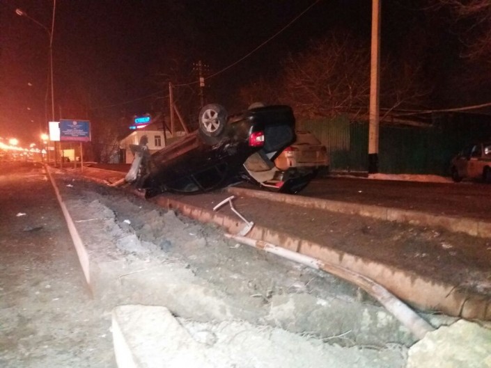 ДТП произошло по Кульджинскому тракту, напротив ледового дворца "Халык Арена". По словам очевидцев, водитель Skoda Rapid двигался в южном направлении. Перед улицей Халиуллина он не справился с управлением и вылетел с дороги. Автомобиль снес на своем пути дорожный знак, фонарный столб и опрокинулся на крышу.