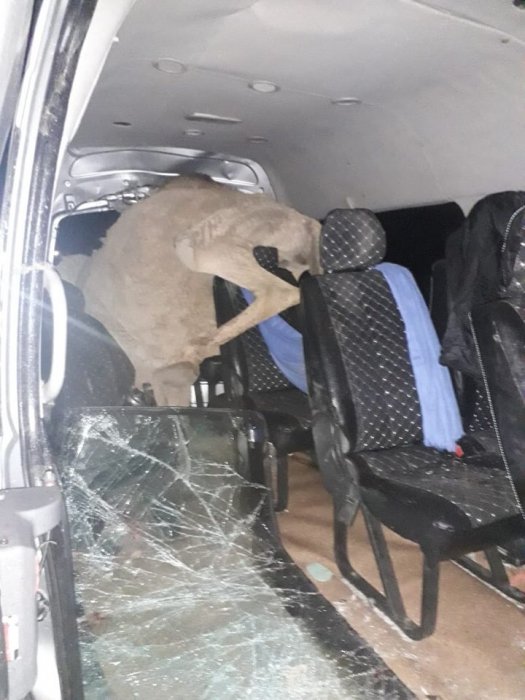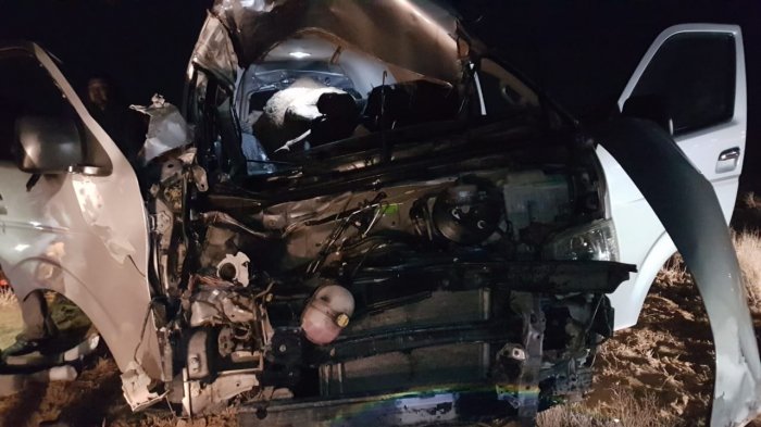 Авария случилась в ночь с 21 на 22 ноября на трассе Актау - Жетыбай. Автомобиль Toyota Hiace столкнулся с верблюдом.