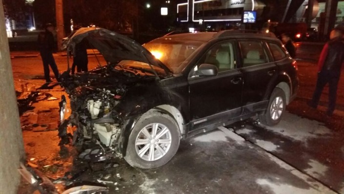 Авария произошла под мостом на пересечении проспектов Райымбека и Сейфуллина. По словам очевидцев, водитель Subaru грубо нарушил правила и допустил столкновение с автомобилем Mercedes-Benz. От удара Subaru отбросило в опору моста и автомобиль загорелся. Пламя было быстро потушено очевидцами.