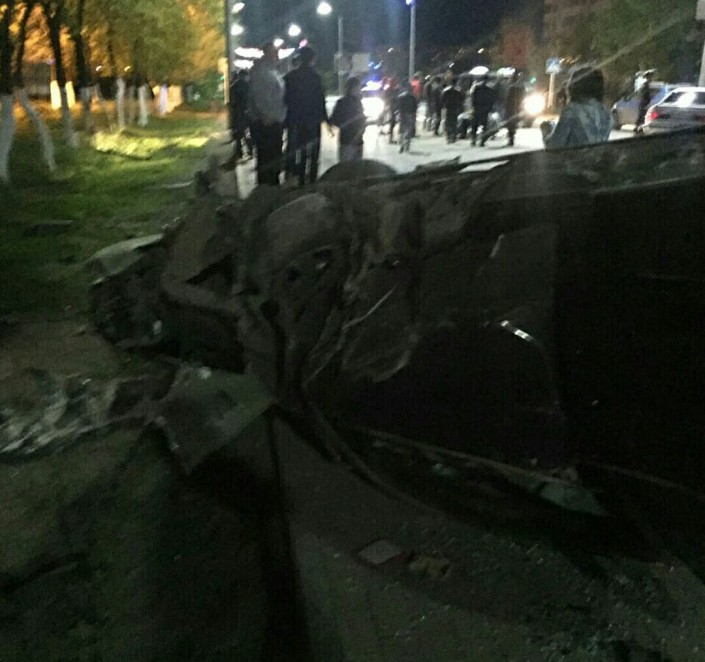 Судя по фотографиям, сделанным свидетелями, автомобиль перевернулся, похоже, вследствие ДТП. Правоохранительные органы выясняют детали происшествия.