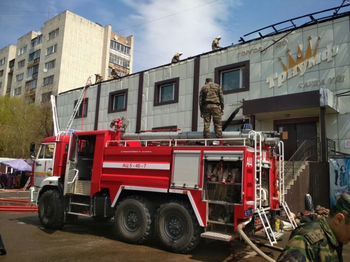 Здание торгового дома "Триумф" введено в эксплуатацию 6 марта 2008 года. Проверка на предмет противопожарного состояния Торгового Дома проводилось с 3 по 5 апреля 2018 года, при которой, было выявлено 32 нарушения. За допущенные нарушения к административной ответственности была привлечена владелец торгового дома.