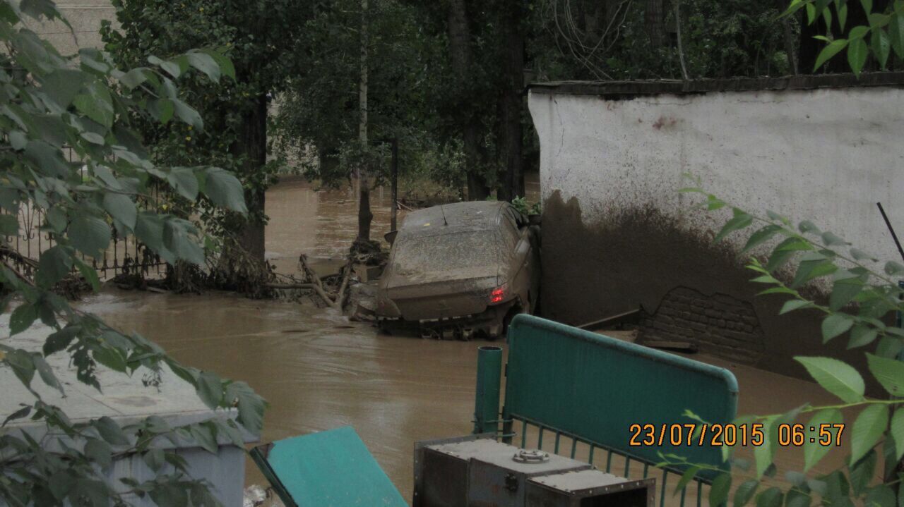 "Ориентировочно в 2.15, по предварительным данным, которые мы получили от "Казселезащиты", произошел прорыв моренного озера Безымянного, под ледником Каргалинка. Объем этого озера составлял порядка 40 тысяч кубов. Прорыв спровоцировал образование селевого потока. Селевой поток дошел до плотины Каргалинка, высота потока была на гребне около 10-12 метров, то есть, вся масса воды была задержана селезащитным сооружением", - рассказал Ильин.