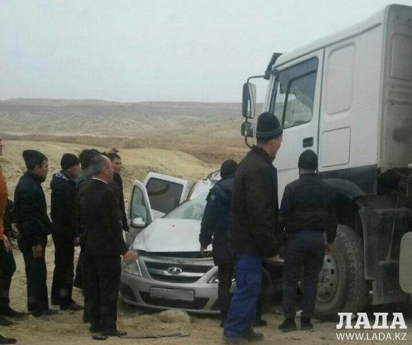 Два человека погибли, еще четверо получили повреждения в дорожной аварии на трассе Актау - Жетыбай, где днем 27 ноября столкнулись китайский самосвал и легковой автомобиль Lada Largus. ДТП произошло в районе впадины Карагие, сообщает местный портал "Лада".