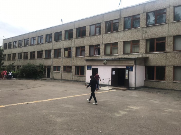 Школа расположена на пересечении улиц Джандосова и Яссауи. Сейчас здесь пусто, но все активно готовятся к встрече эвакуированных: освобождают помещения для ночлега, подвозят питьевую воду и продукты.