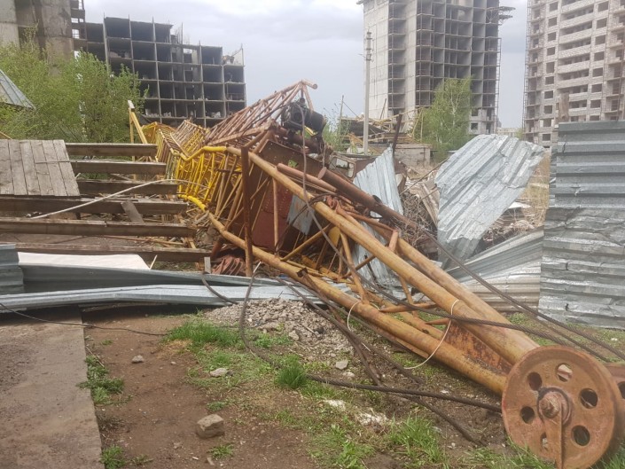 В Астане рухнул строительный кран из-за урагана, передает Tengrinews.kz. Видео падения крана прислали читатели.